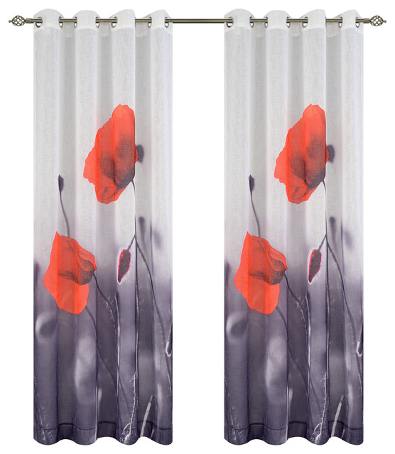 Poppy Set Of 2 Sheer Art Drapery Curtain Panels Grommets