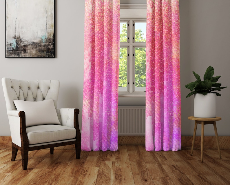 Pink Watercolor Window Curtains Long Panel Sheer And Blockout Panels Bright Window Treatments Living Room Decor