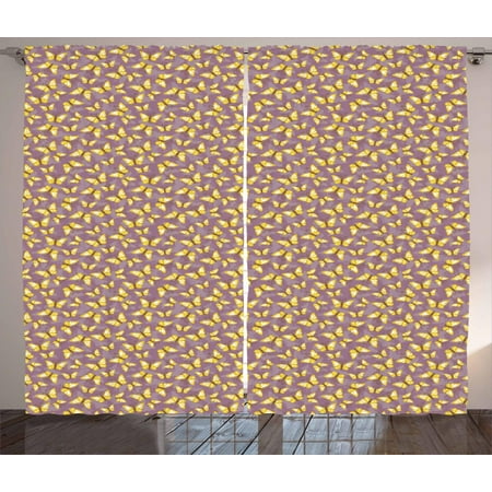Butterfly Curtains 2 Panels Set Insects With Yellow And Patterned Wings Romantic Springtime Inspiration Window Drapes For Living Room Bedroom 108w