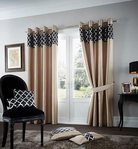 Curtains For Bedroom Patterned Curtains Pair Set Size 66 X 90 Inches Printed With Matching Tie Backs Shiney Goldblack